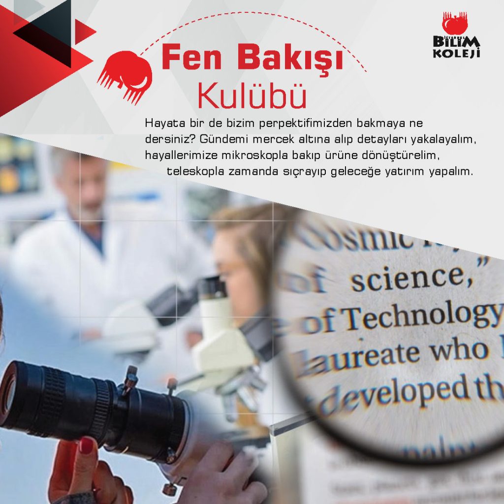 Fen Bakışı Kulübü, öğrencilerin yaş ve gelişim düzeylerine uygun olarak planlanan çalışmalarla; bilimi, teknolojiyi ve doğayı doğru yöntemlerle tanımalarını sağlar.
